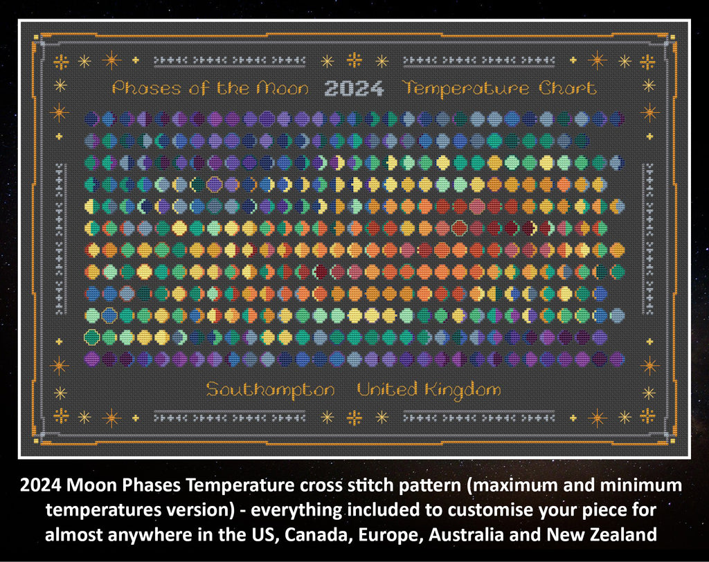 Moon Phases 2025 Temperature cross stitch pattern maximum and